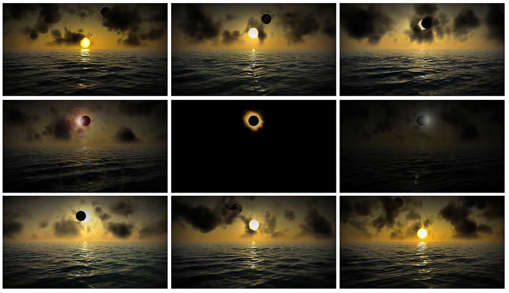 create simulated, collaged landscapes, the uncanny sense of a seamless